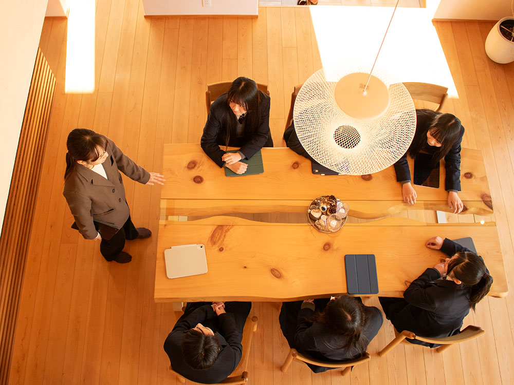 あっという間に終わりの時間を迎えたフィールドスタディ。最後の質問コーナーでは、事前に生徒さんからいただいた質問にお答えしていきました。「なぜ120年もこの事業を続けることができるのですか?」「なぜ、これだけ多くの住まいに関する事業をお客様に提供することができるのですか?」といった、会社のことや、「仕事のやりがいはなんですか?」「顧客と信頼を築く上で大切にしていることはなんですか?」「この仕事に就くのに必要な資格はありますか?」といった仕事に関することなど、多岐に渡る質問をいただき、事前に当社について調べてきてくれたこと、建築業界の仕事に興味関心を寄せてくれていることに、嬉しく思いました。